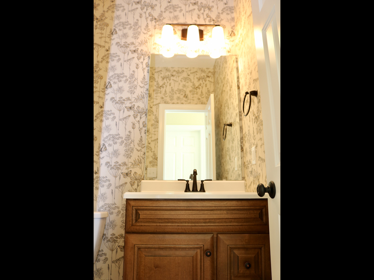 We are in LOVE with this 1900 sq.ft. MODERN FARMHOUSE in Shelby, NC. Our clients mastered the MODERN FARMHOUSE look with their choices of flooring, lighting, cabinetry and wallpaper. Exterior photos are coming soon! But, here is a SNEAK PEEK to the inviting SIDE ENTRANCE. The paint choice of the GREEN SIDE DOOR is perfect!