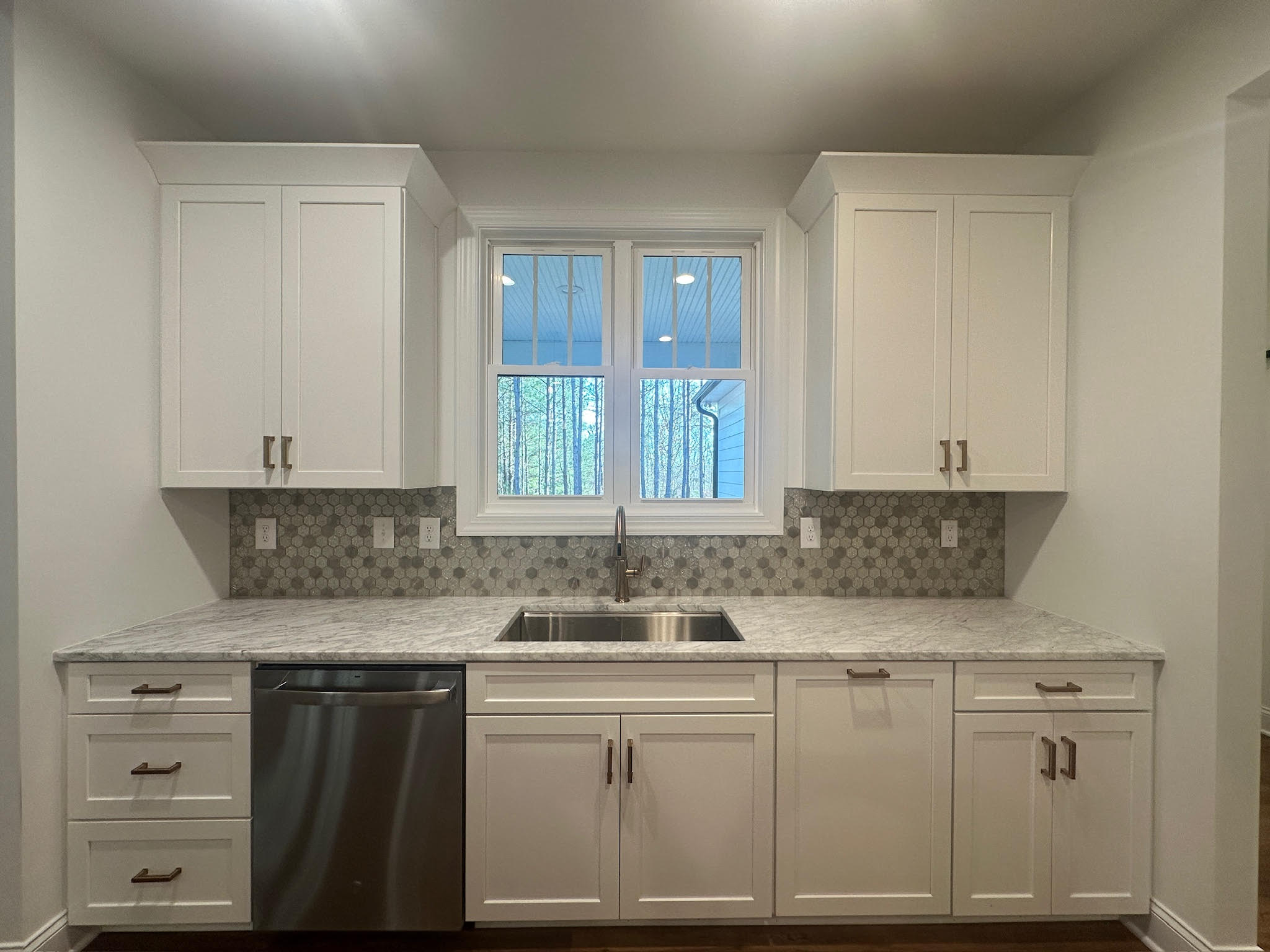 Outdoor living is extended through a spacious rear porch and deck overlooking the surrounding trees—perfect for relaxing, entertaining, or enjoying the natural setting year-round. With a well-planned layout, quality materials, and attention to detail throughout, this home reflects Smart Construction’s commitment to building spaces that are as functional as they are beautiful.