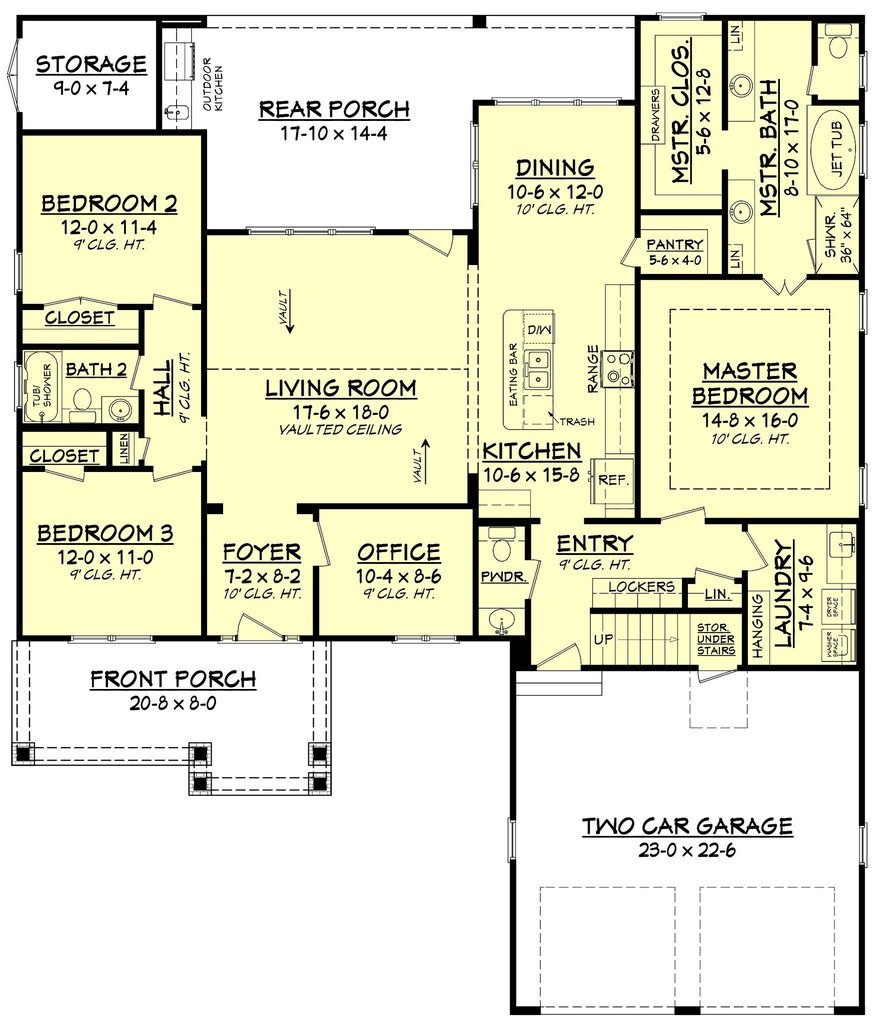 This well-appointed Craftsman style house plan offers many great features. Three well-sized bedrooms are offered within the popular split plan design. The large kitchen offers abundant counter space along with a sitting bar and convenient eating area and walk-in pantry close at hand. The master suite is luxurious and spacious, and features a custom shower, jet tub, dual vanities, and expansive closet space. A bonus room is also provided upstairs, and could be anything from an extra bedroom to a media space. - Housezone Plan