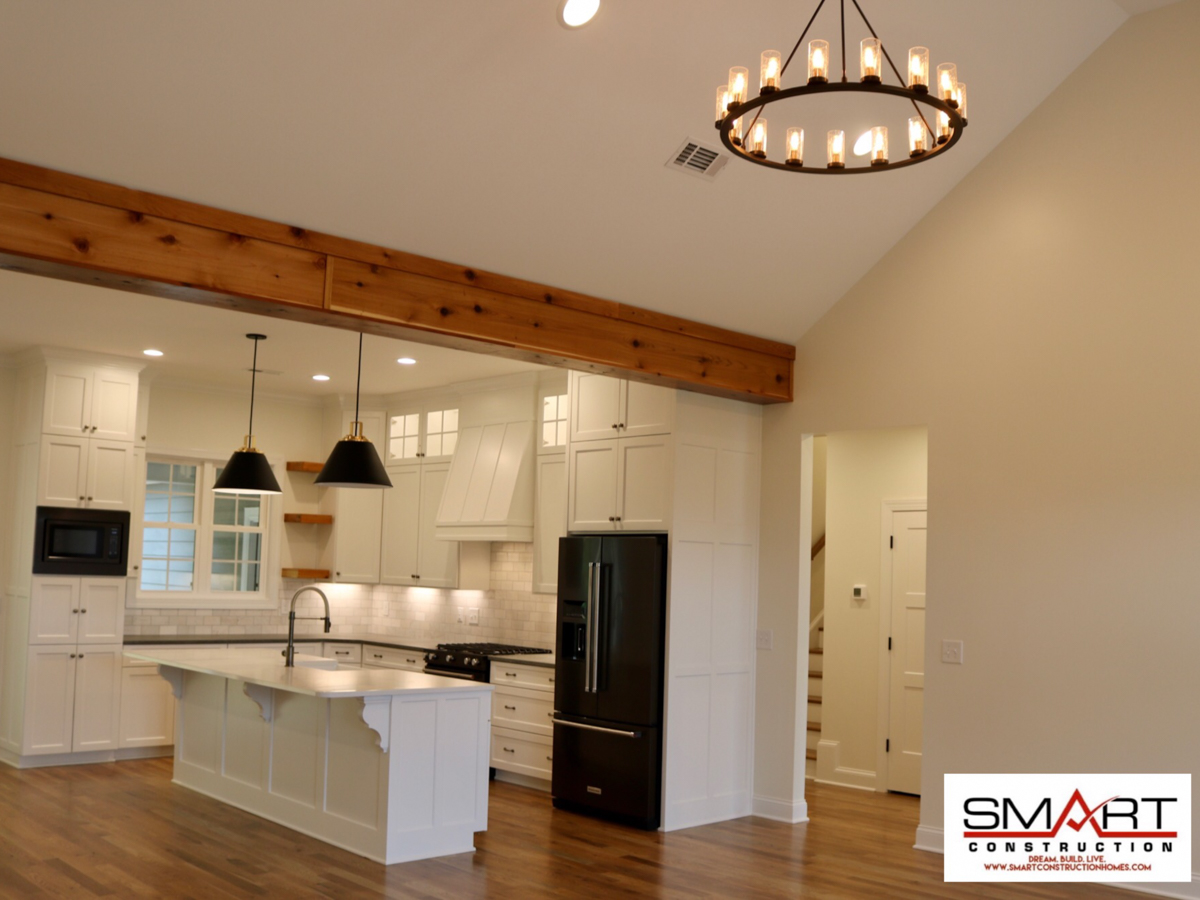 SUCH A GREAT FLOOR PLAN! We love the stained beam accents. The white kitchen is gorgeous. The tile selections in the master bathroom are perfect. DREAM. BUILD. LIVE. #21styearofbuilding