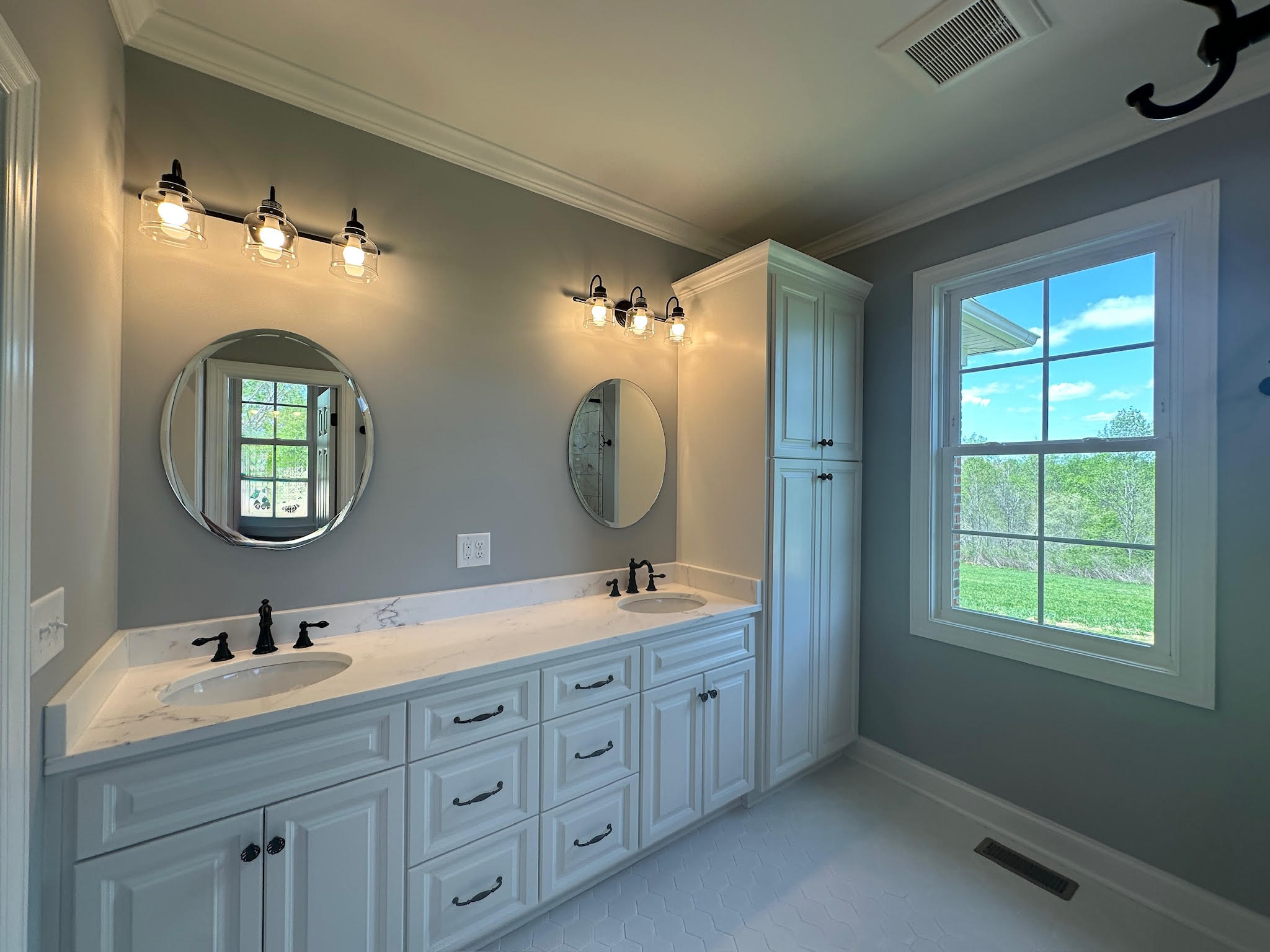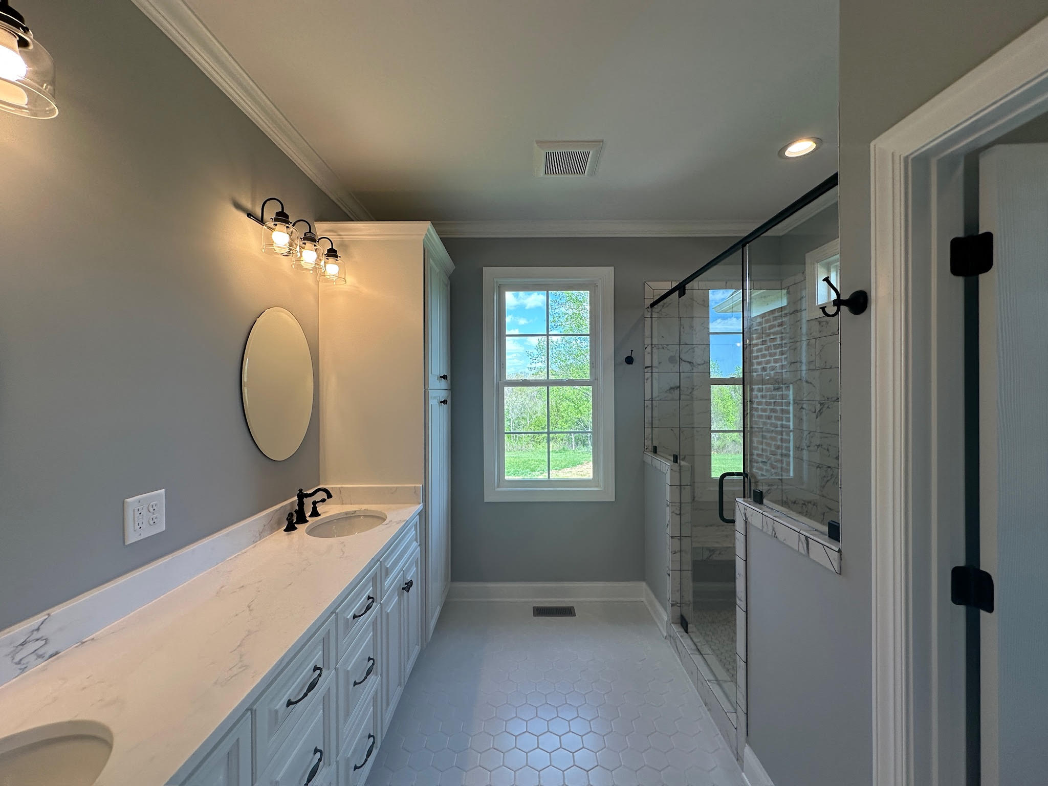 Bathrooms are finished with clean, modern selections—custom vanities, stylish lighting, and tiled showers that reflect a calm, spa-inspired aesthetic. Each space is designed with comfort, durability, and long-term appeal in mind.